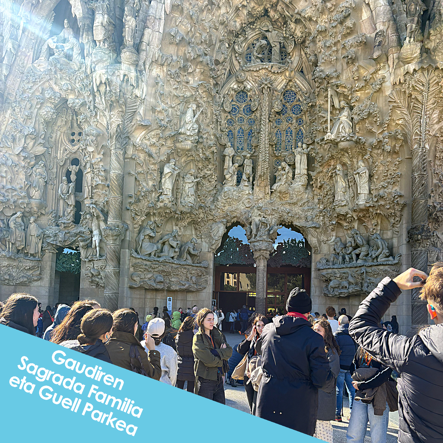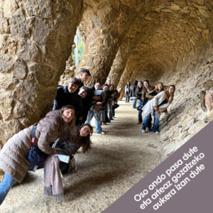 2. Batxilergoko Artearen Historiako ikasleak Bartzelonan egon dira otsailaren 11etik 14ra, arte lanak ikusten eta hiriak ematen duen kultura jasotzen. Bertan Gaudiren Sagrada Familia eta Park Guell, Santa Maria del Mar-eko basilika eta MNAC museoa bisitatu dituzte. Oso ongi pasa dute eta arteaz gozatzeko aukera izan dute.