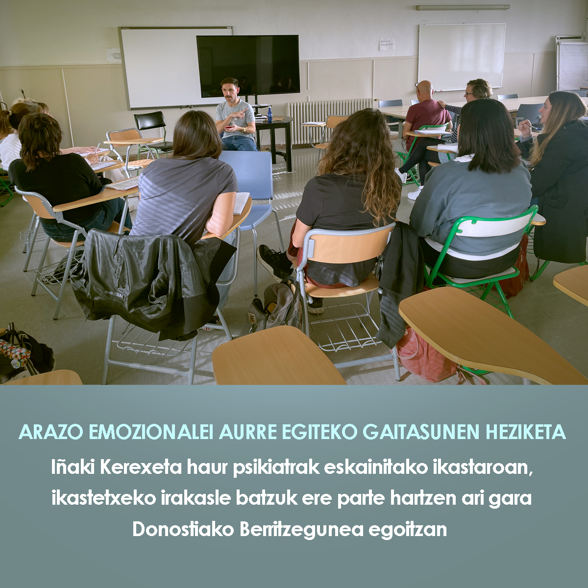 Con el objetivo de proporcionar a los alumnos de 1º y 2º de la ESO herramientas para gestionar problemas emocionales, algunos profesores del centro también participan en el curso que imparte el psiquiatra infantil Iñaki Kerexeta en la sede de Berritzegune.