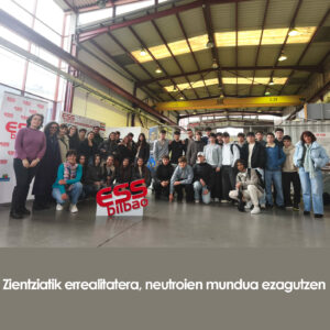 2.Batxilergoko ikasleek STEAM SAREko “Energia berrikuntzan bihurtuz: ulertu nola funtzionatzen duen partikula-azeleragailu batean oinarritutako neutroi-iturri batek” izeneko jardueran parte hartu zuten martxoaren 6an. Esperientzia paregabea izan dute, ikasgelako ikaskuntza eta benetako ingurune zientifikoa uztartuz. Jardueraren baitan, ESS Bilbaora bisita gidatua egin genuen, eta bertan ikasleek aukera izan zuten lehen eskutik ezagutzeko nola funtzionatzen duen partikula-azeleragailu batean oinarritutako neutroi-iturri batek.